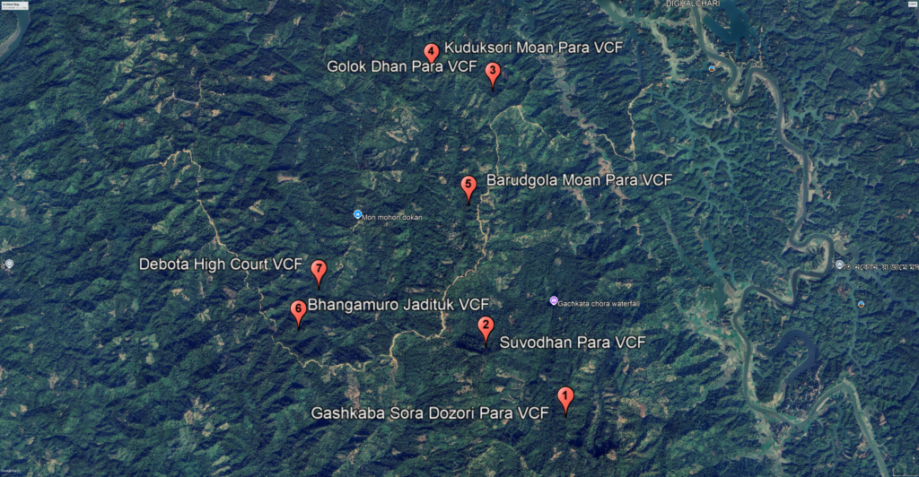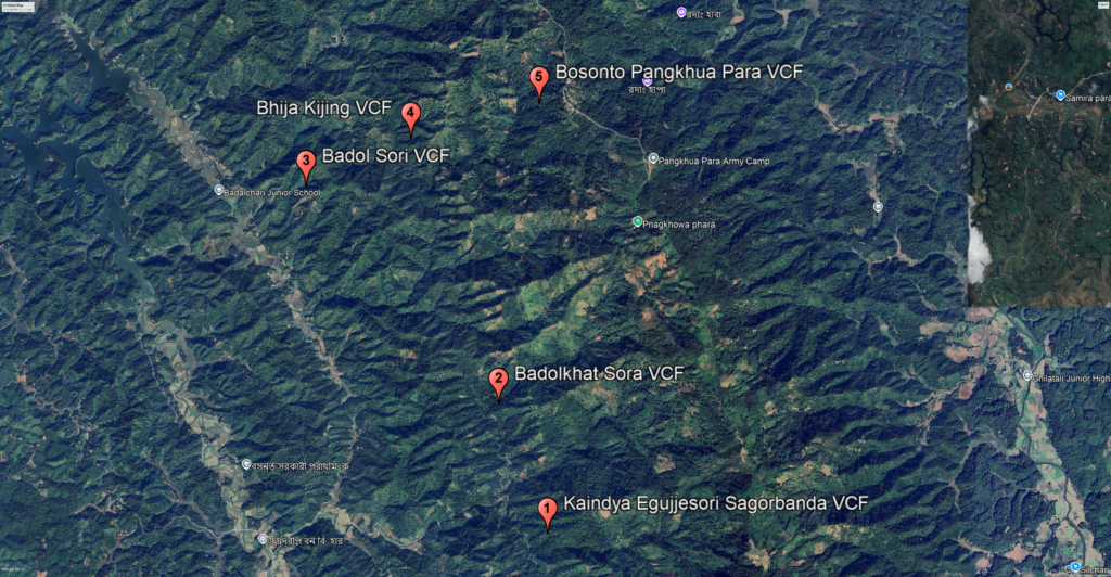 Across 14 Village Common Forests in three upazilas of the Chittagong Hill Tracts, Indigenous Peoples preserve forests through a rich tapestry of spiritual beliefs, cultural traditions, customs, and customary laws. These forests are grouped into three clusters, each reflecting unique ecological and cultural landscapes.